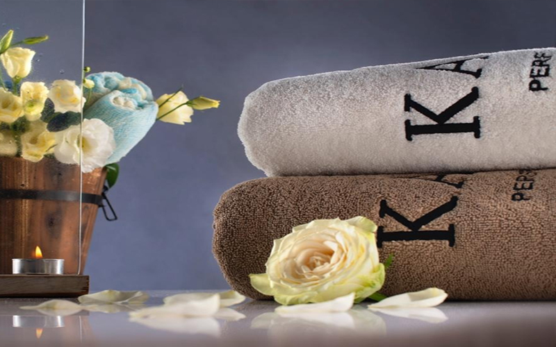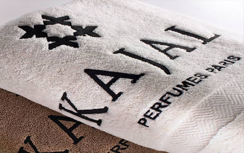 گلدوزی: ماندگاری بالایی دارد و جلوهای لوکس به حوله میبخشد.